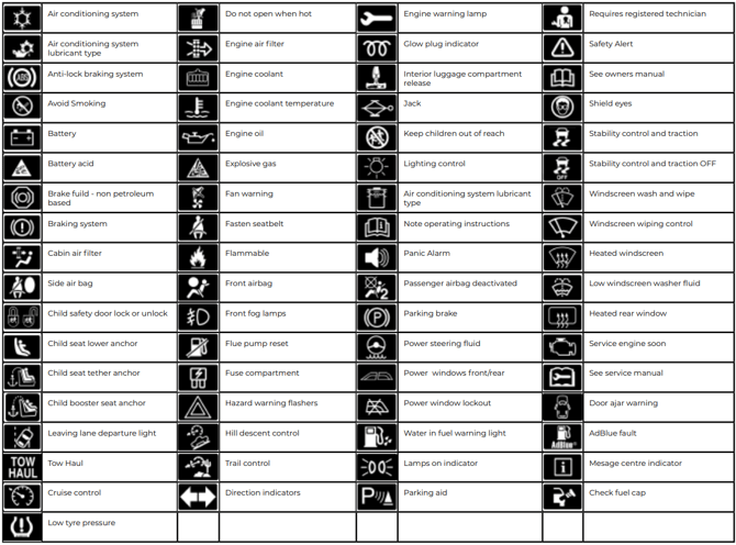 Nos camping-cars sont inspectés afin de minimiser les risques d'allumage de voyants d'alerte pendant votre location. Toutefois, si un voyant s'allume, prenez un instant pour vérifier le symbole, suivez les instructions et contactez-nous pour obtenir de l'aide.